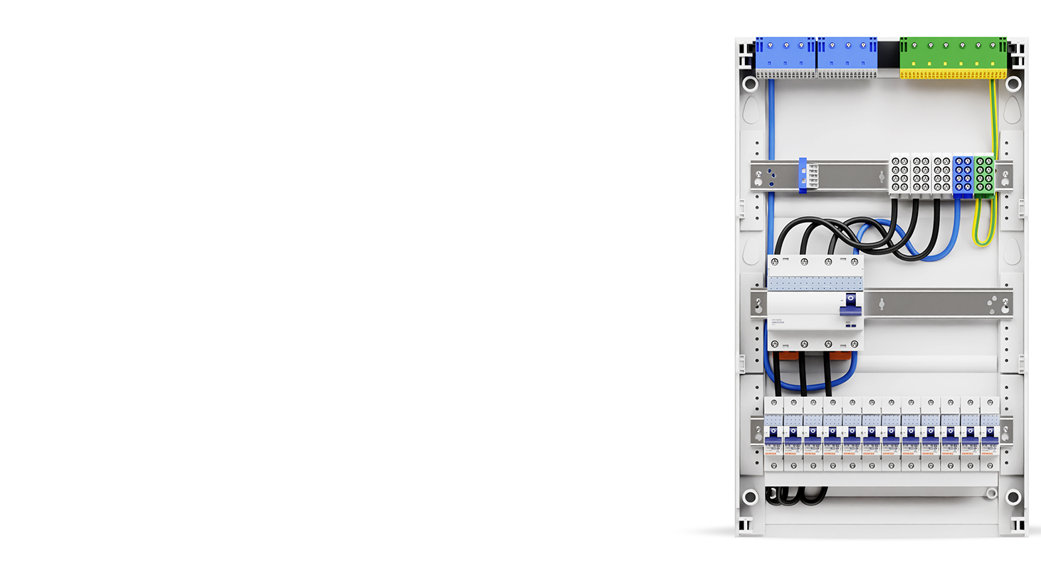 Kompakte Unterverteilungen für Waschmaschinen, Trockner, Heizkreise oder Nebenräume – fertig vormontiert, anschlussbereit geliefert.