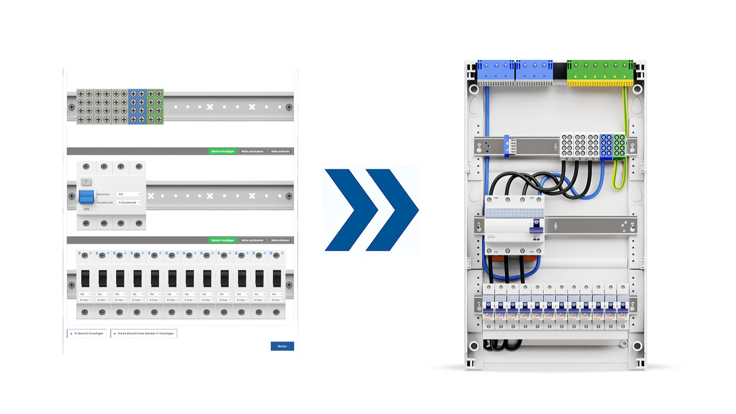Plane und gestalte deine Verteilung direkt online – jede Änderung siehst du in Echtzeit. Vom Hauptschalter bis zur letzten Sicherung: du entscheidest, wir setzen um.